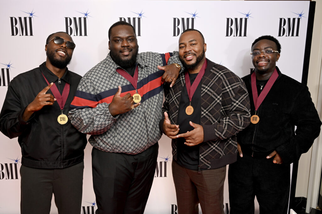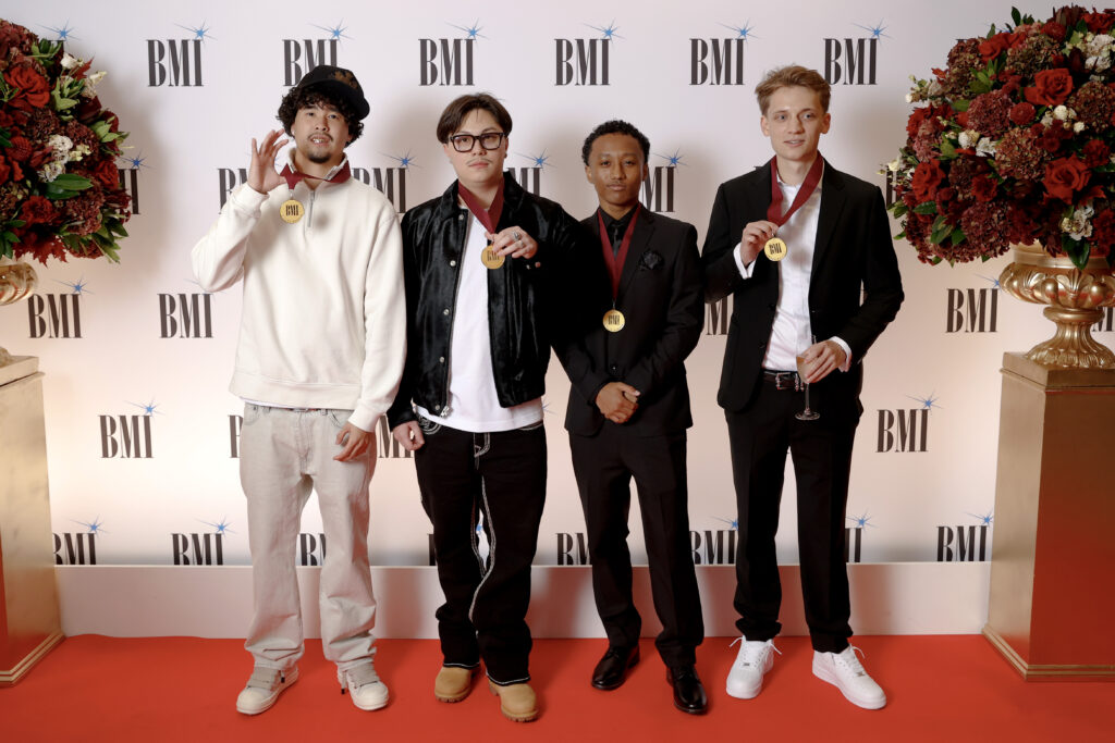 LONDON, ENGLAND – SEPTEMBER 29: (L-R) Euro, Sammy Soso, Ari PenSmith and Believve attend the 2025 BMI London Awards at The Dorchester on September 29, 2025 in London, England. (Photo by Jeff Spicer/Getty Images for BMI)