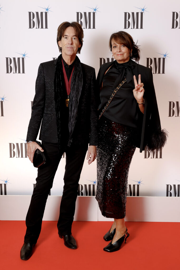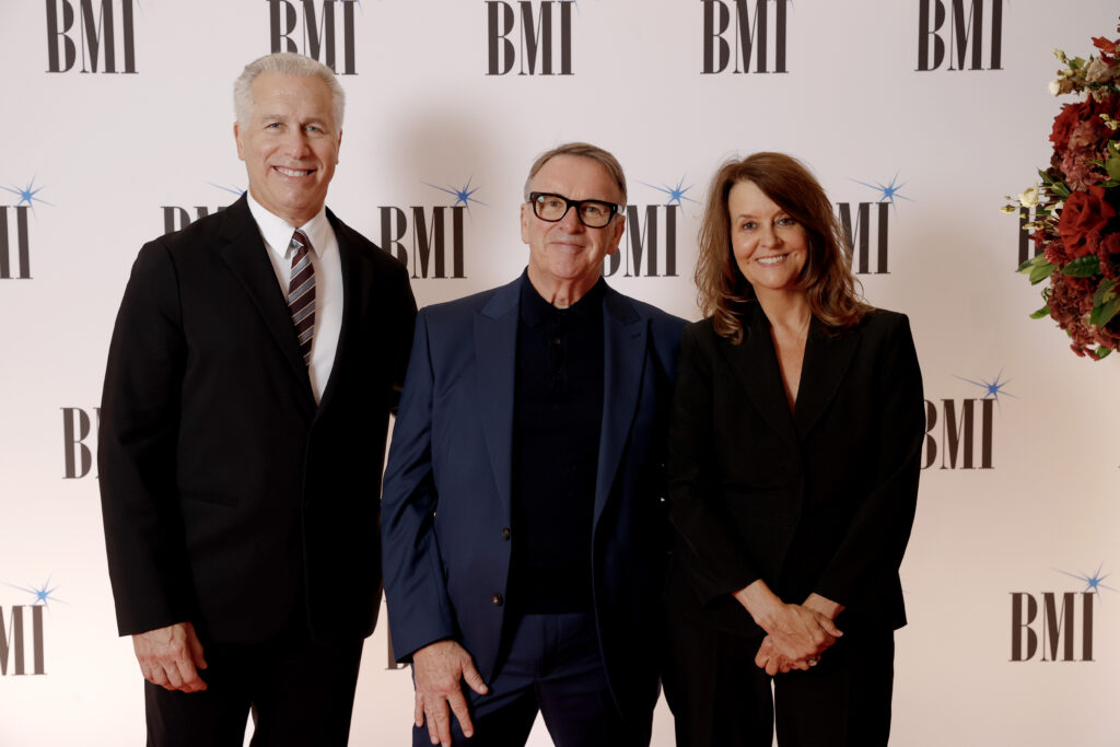 LONDON, ENGLAND – SEPTEMBER 29: (L-R) Mike Steinberg Executive Vice President, Chief Revenue & Creative Officer, BMI, Chris Difford and Tracy McKnight, VP, Creative, Film, TV & Visual Media, BMI attend the 2025 BMI London Awards at The Dorchester on September 29, 2025 in London, England. (Photo by John Phillips/Getty Images for BMI)