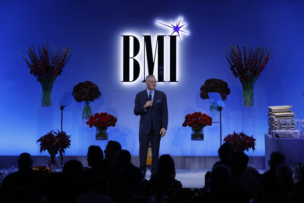 LONDON, ENGLAND – SEPTEMBER 29: Mike O’Neill, President & CEO, BMI onstage during the 2025 BMI London Awards at The Dorchester on September 29, 2025 in London, England. (Photo by John Phillips/Getty Images for BMI)