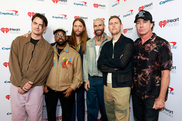 LAS VEGAS, NEVADA – SEPTEMBER 19: (FOR EDITORIAL USE ONLY) (L-R) Sam Farrar, Matt Flynn, Paul “PJ” Morton, James Valentine, Adam Levine, and Jesse Carmichael of Maroon 5 attend the 2025 iHeartRadio Music Festival at T-Mobile Arena on September 19, 2025 in Las Vegas, Nevada. (Photo by Kevin Mazur/Getty Images for iHeartRadio)