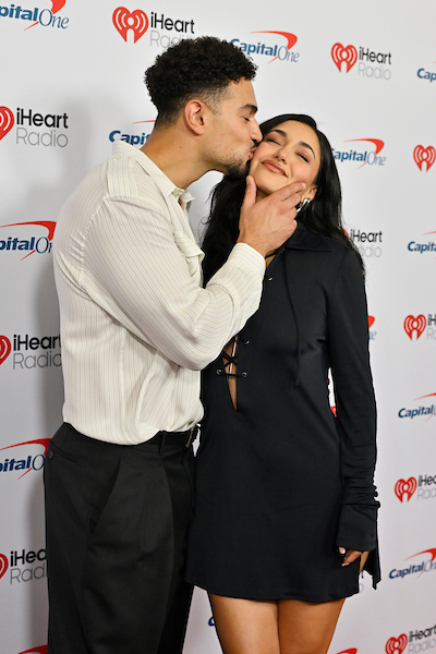 LAS VEGAS, NEVADA – SEPTEMBER 19: (FOR EDITORIAL USE ONLY) (L-R) Miguel Harichi and Leah Kateb attend the 2025 iHeartRadio Music Festival at T-Mobile Arena on September 19, 2025 in Las Vegas, Nevada. (Photo by David Becker/Getty Images for iHeartRadio)